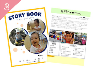 子どもたちの内面も含めた成長の様子やお友だちとの関りを保育者が見守り、”Story Book”に記録します。保護者はStory Bookをいつでも見ることが出来ます。複数の保育者で作成することで、多様な視点から見たお子さまの成長をお届けします。